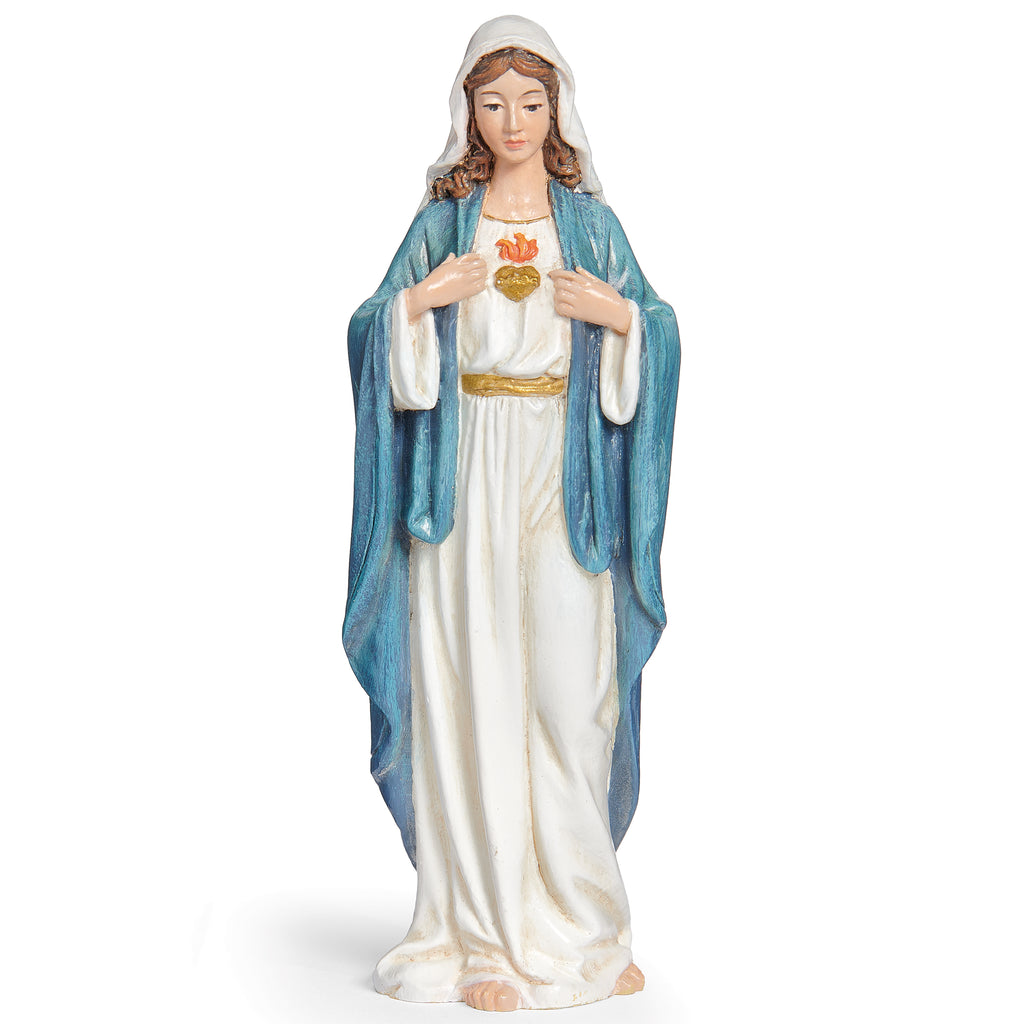 From the Patrons & Protectors Collection, this Immaculate Heart of Mary figure captures the Blessed Virgin’s sorrowful yet loving heart, a symbol of her unwavering compassion for humanity. Depicted with delicate detail and serene expression, it serves as a beautiful reminder of her intercession, purity, and maternal love. A touching addition to prayer spaces, Marian altars, or as a meaningful gift of faith and comfort.