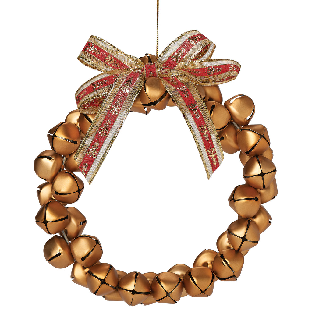 This wreath is crafted from durable metal jingle bells, arranged in a circular form to bring classic holiday cheer to doors, walls, or tabletops. With a festive jingle and timeless design, it makes a joyful accent for your home or a thoughtful seasonal gift.