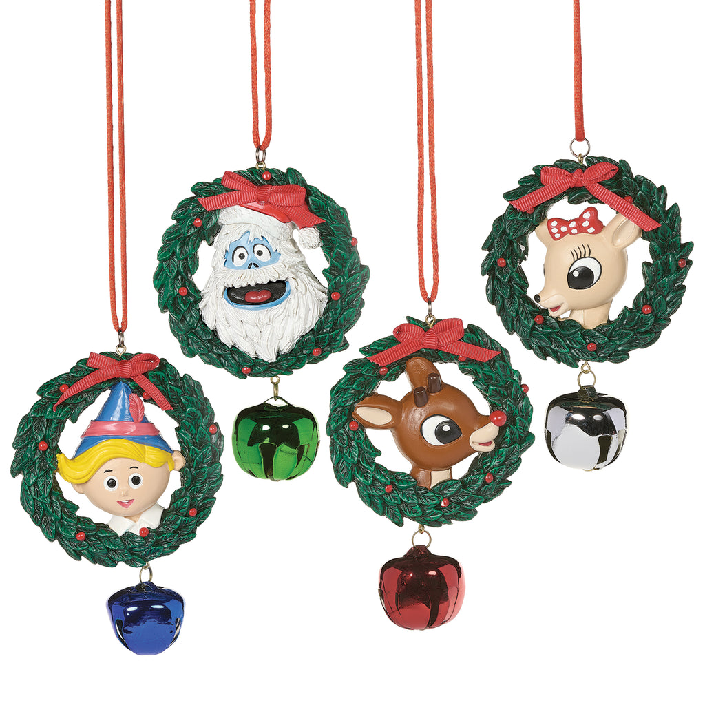 Bring jolly cheer to your tree with this Jinglebuddies ornament set featuring Rudolph and three friends! Each ornament includes a festive wreath frame, character face, and colorful jingle bell for extra holiday charm.