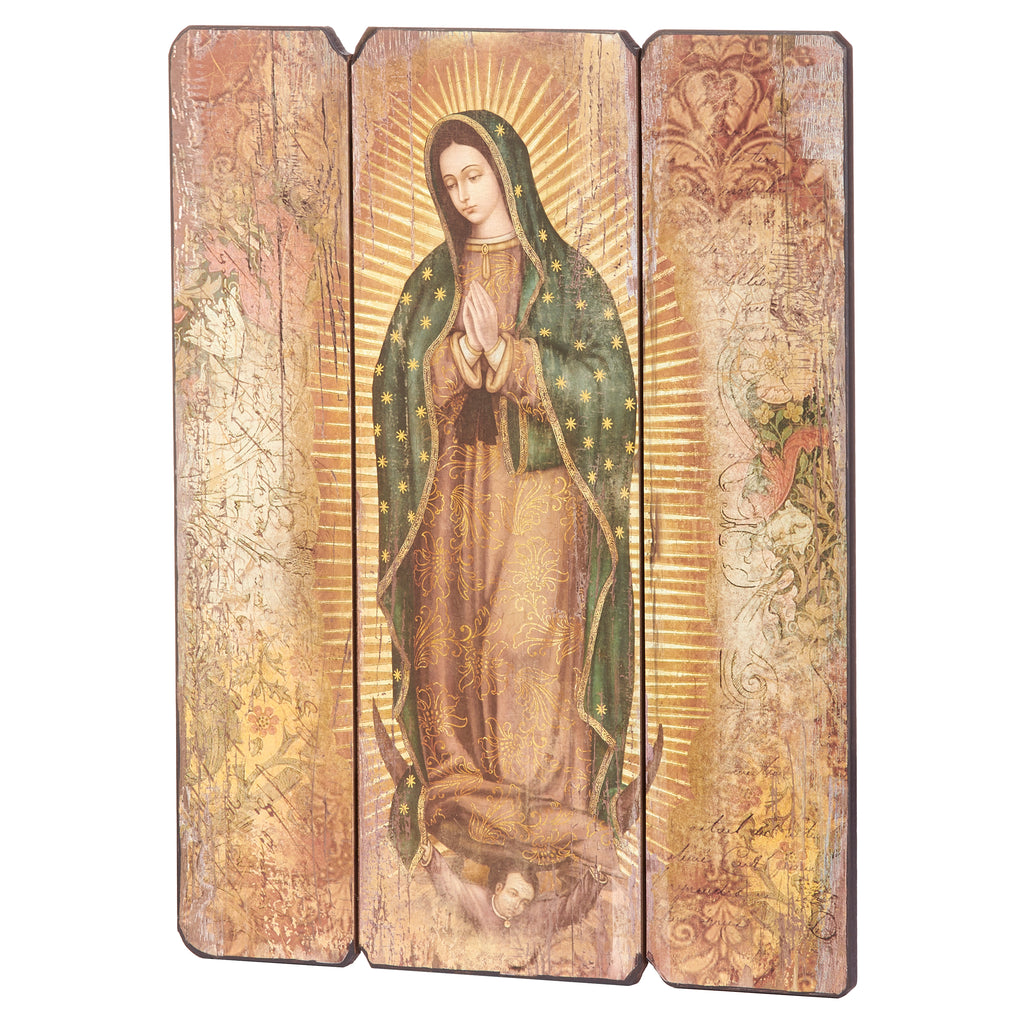 This Our Lady of Guadalupe Decorative Panel from Joseph’s Studio showcases a vibrant and reverent image of the Blessed Mother as Patroness of the Americas. It features rich colors and finely rendered detail that highlight her compassion and protective care. Perfect for prayer corners, home altars, or chapels, this panel serves as a cherished devotional piece and a timeless expression of faith.
