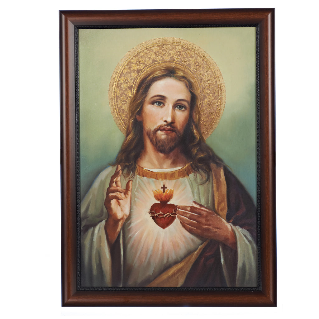 Honor the Sacred Heart with this beautifully framed artwork, featuring traditional imagery surrounded by symbolic elements of faith and devotion. Finely detailed and elegantly finished, it brings a sense of reverence and grace to any wall. Perfect for homes, churches, or prayer spaces, this timeless piece serves as a heartfelt reminder of Christ’s enduring love and compassion.