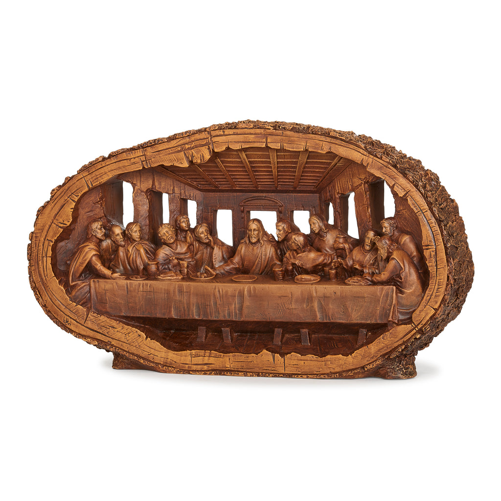 This Carved Last Supper Figure from Joseph’s Studio is expertly crafted, featuring intricate artistry that beautifully captures the essence of Christ’s final meal with His disciples. It is designed for tabletop or shelf display, making it a meaningful centerpiece for prayer spaces, dining rooms, or offices.