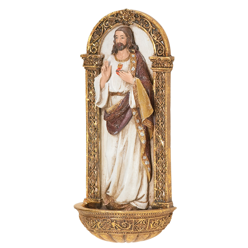 Experience the beauty of devotion with this Sacred Heart of Jesus Water Font, featuring exquisite craftsmanship and intricate detailing. A powerful symbol of love and faith, it is perfect for holding holy water in prayer areas, entryways, or as a meaningful gift to inspire heartfelt worship and reverence.