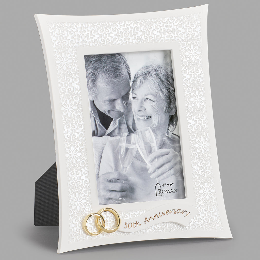 Commemorate a golden milestone with the Lace 50th Anniversary Frame. Featuring intricate lace-style detailing and a gold-accented double ring emblem, this elegant design brings timeless charm to milestone celebrations. A meaningful gift for a special couple or a graceful addition to anniversary décor, it’s a beautiful way to honor 50 years of love and devotion.