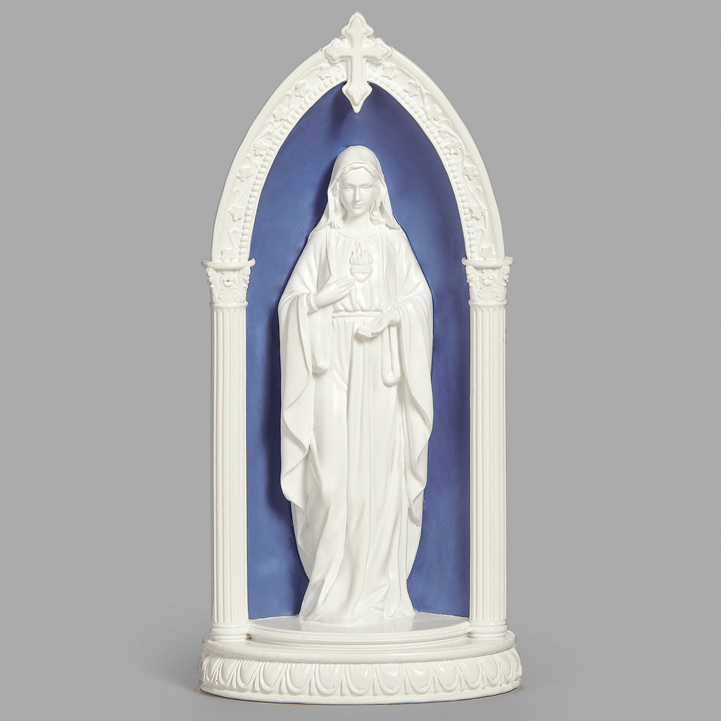 This serene Immaculate Heart of Mary plaque features soft illumination and the classic arched style of Della Robbia. A graceful and symbolic addition to any home altar, it reflects deep love, purity, and spiritual comfort.