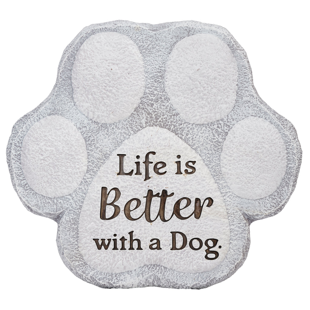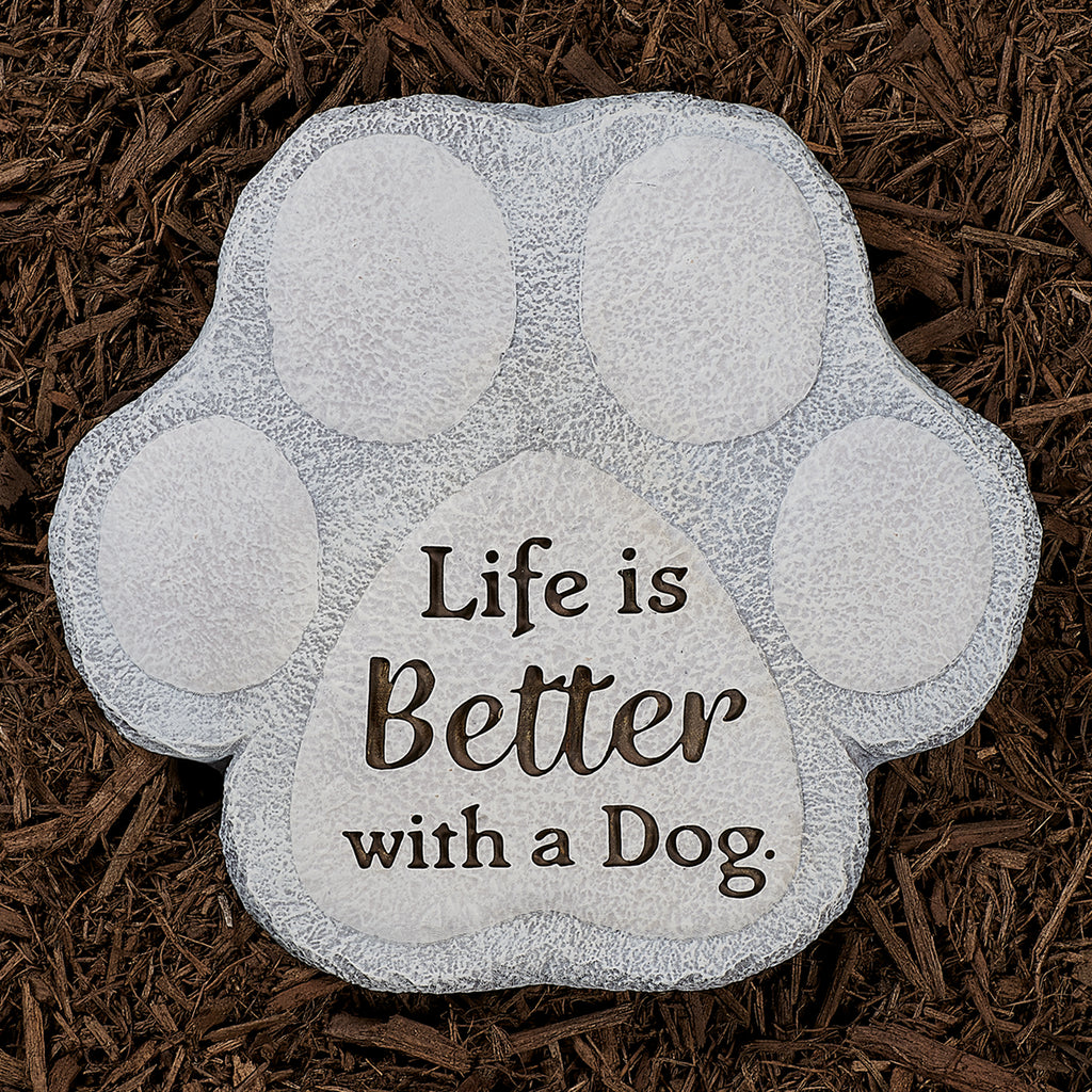 "Life is Better with a Dog" - Paw Print Garden Stone