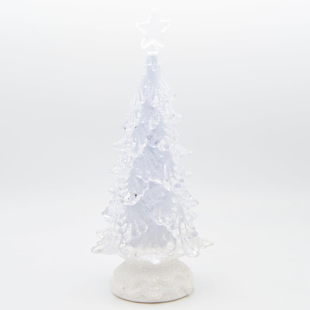 Add color and motion to your holiday display with this lighted multicolor tree. Featuring a frosted finish, this charming tree slowly rotates while glowing in vibrant, shifting colors. Perfect for tabletops, mantels, or holiday centerpieces, it brings dynamic festive cheer and a radiant glow wherever it’s displayed.