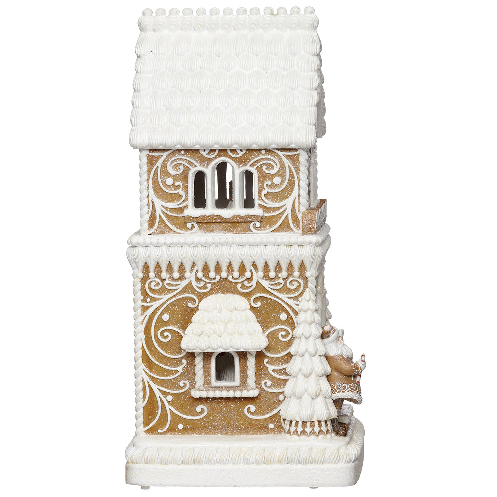 Celebrate the season in sweet style with this enchanting lighted musical gingerbread house. Inside, a rotating Christmas tree sparkles to life as cheerful holiday melodies fill the air, creating a scene that feels straight out of a winter wonderland. With glowing windows, intricate candy-like detailing, and charming motion, this piece brings warmth, whimsy, and joy to any holiday display.