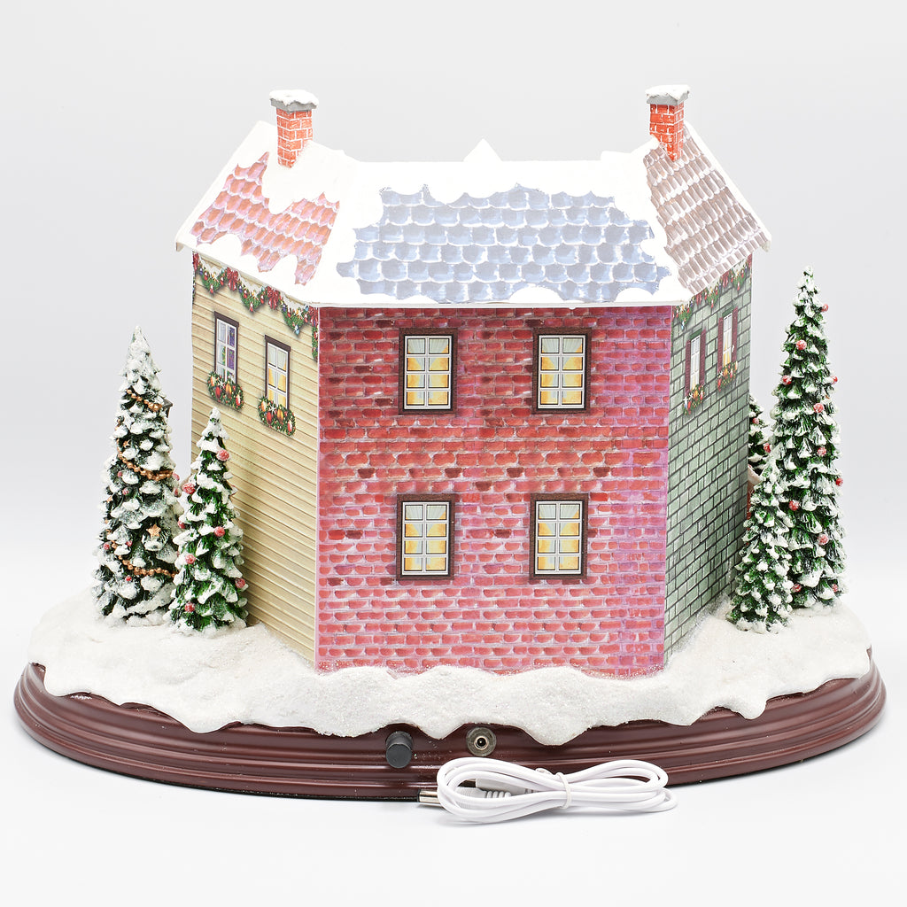 Bring home the charm of a bustling holiday village with this festive centerpiece. The town square is decorated with wreaths, garlands, and a towering Christmas tree, while villagers gather to celebrate the season. A cheerful train circles the snowy scene, adding movement and delight, while warm lights glow from the shop windows marked Coffee and Diner. Full of colorful detail, this illuminated village captures the joy of Christmastime and makes a perfect addition to any holiday collection.