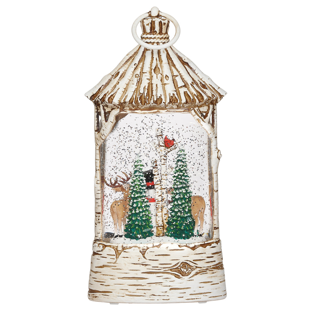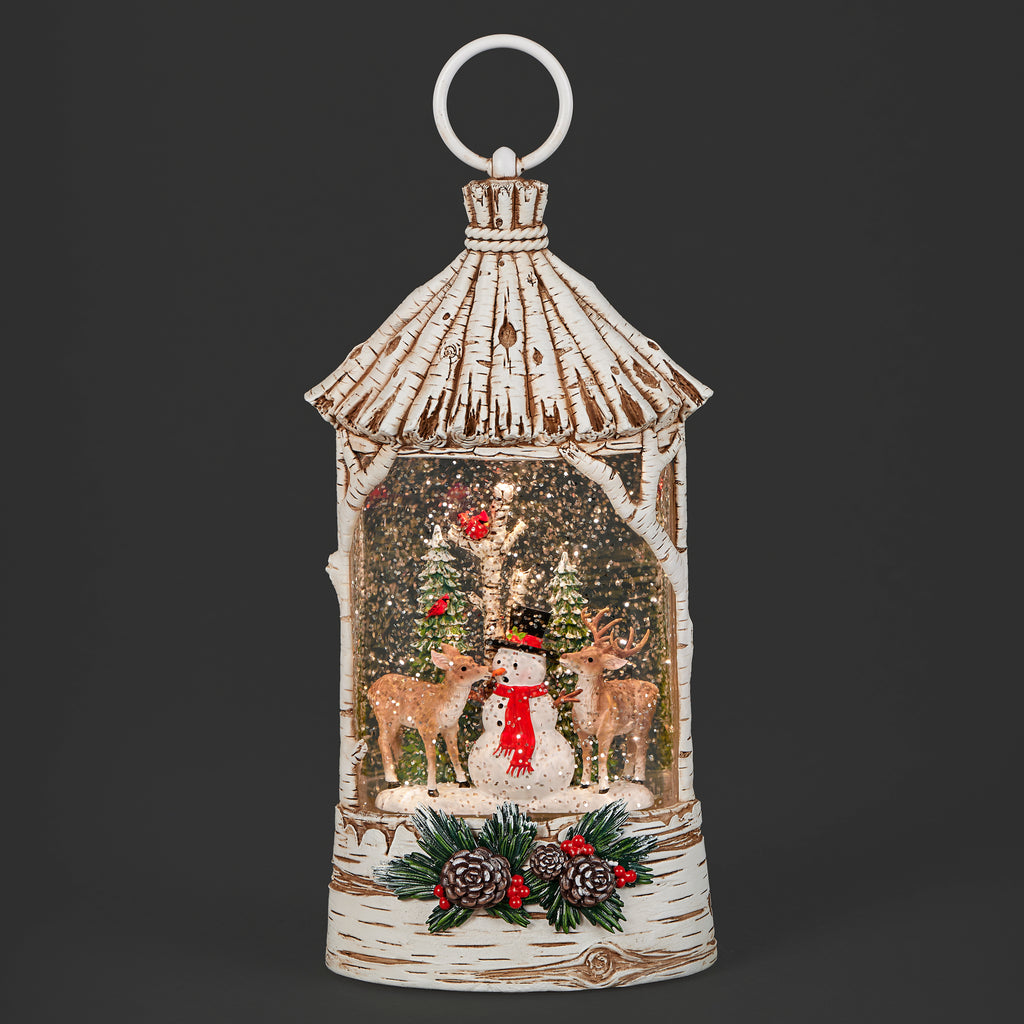 Create a serene winter scene with this charming birch-look lantern, featuring a friendly snowman and deer surrounded by swirling glitter. Its gentle glow and woodland-inspired design make it a warm, cozy seasonal accent—an exclusive Roman piece that beautifully complements rustic or nature-themed decor, bringing peaceful winter magic to your home.