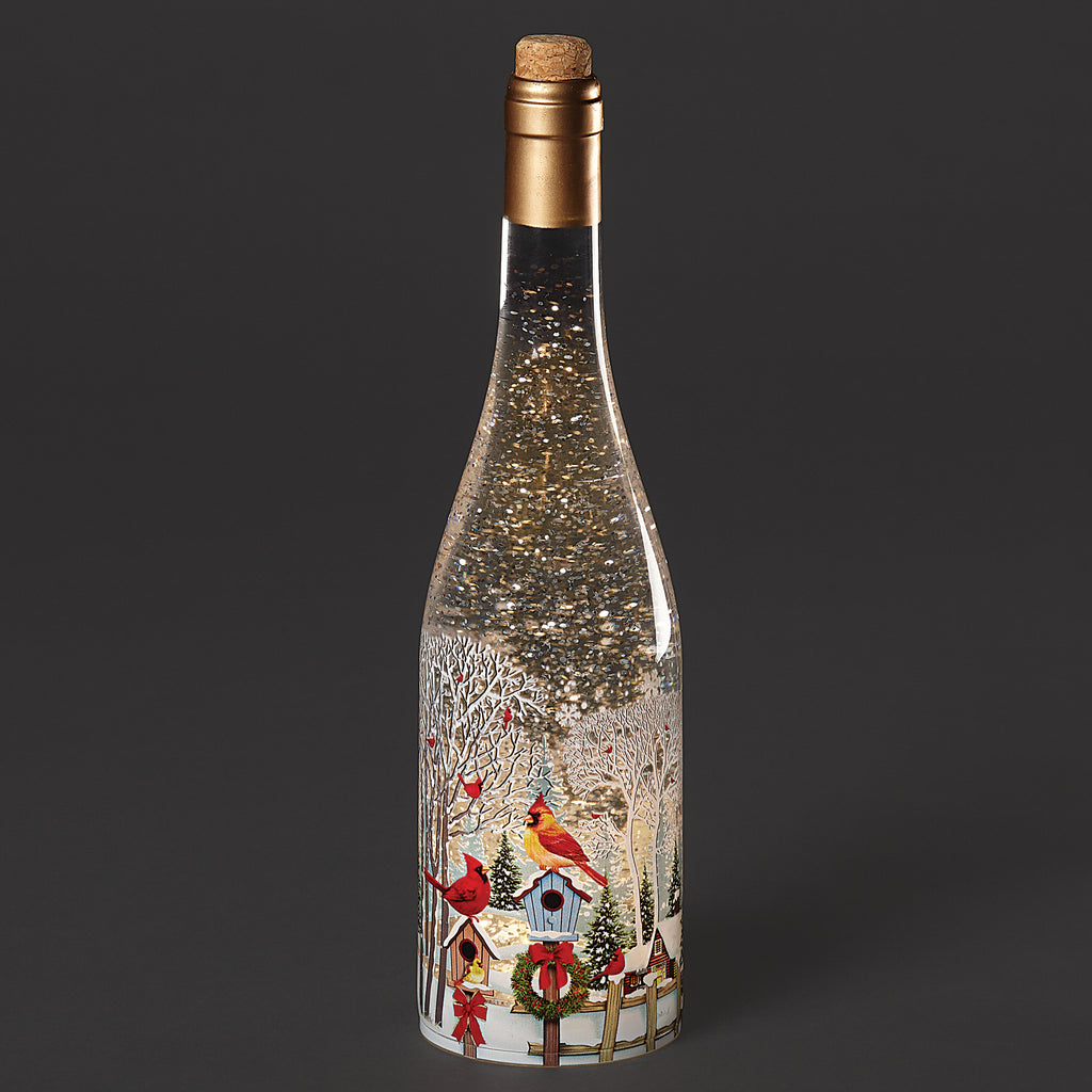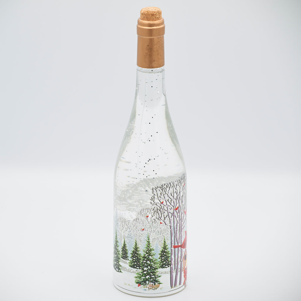 Celebrate the season with this elegant lighted swirl bottle featuring a festive cardinal decal. The gentle swirl of glitter and warm glow create a cozy holiday ambiance perfect for shelves or mantels.