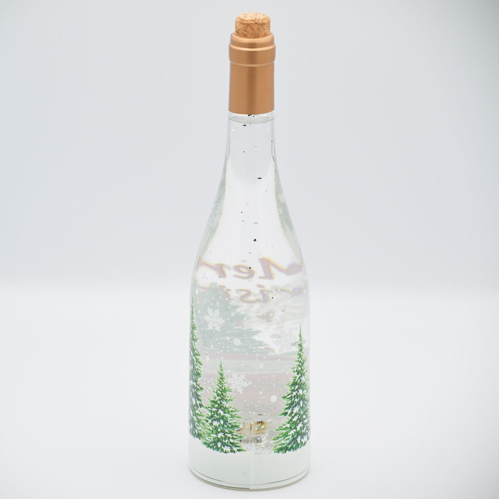 This charming lighted swirl Wine shaped bottle showcases a classic red truck and "Merry Christmas" message. Sparkling glitter swirls inside, creating a nostalgic and heartwarming holiday accent.