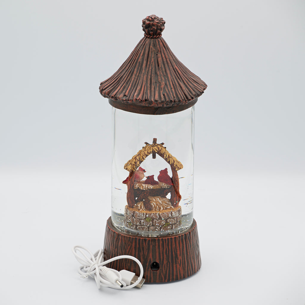 Create a peaceful and faith-filled holiday scene with this lighted swirl birdhouse, featuring a serene Cardinal Holy Family. Swirling glitter and gentle illumination work together to craft a calming display that adds warmth, spirituality, and seasonal beauty to your festive decor.