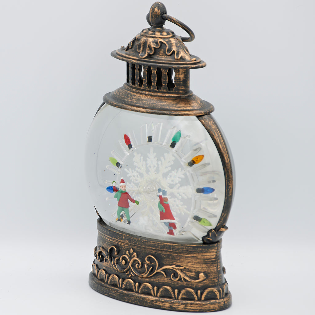 Delight in holiday whimsy with this enchanting swirl Ferris wheel. The playful scene features children enjoying a snowball fight, surrounded by swirling glitter and glowing lights that create a sense of movement and festive cheer. A joyful centerpiece for mantels, shelves, or holiday displays, it captures the magic and wonder of Christmas in motion.