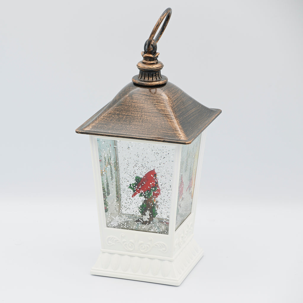 Confetti Lites Lighted Swirl White & Bronze Lantern with Cardinals Scene