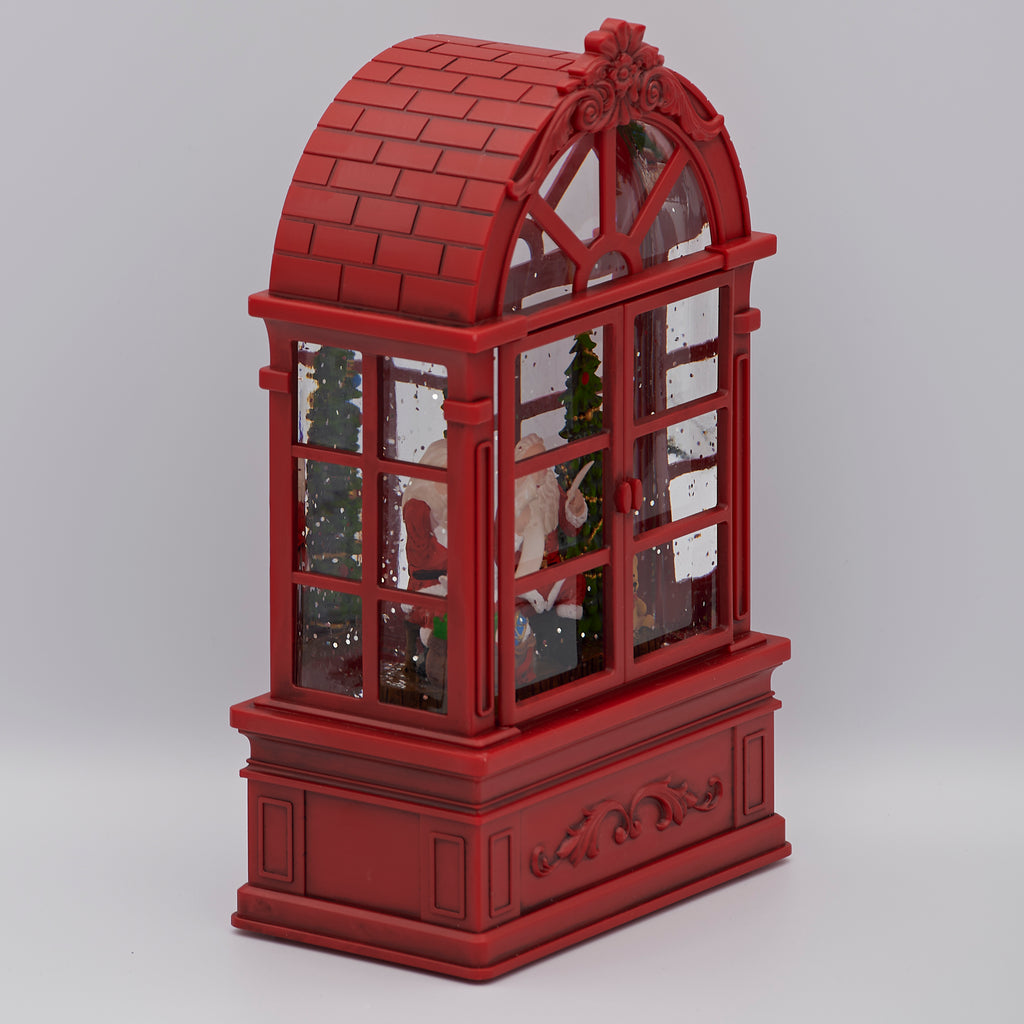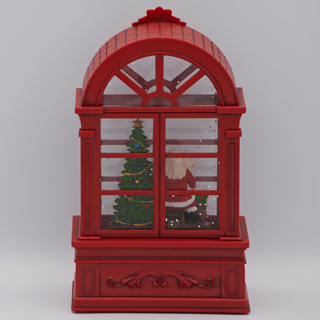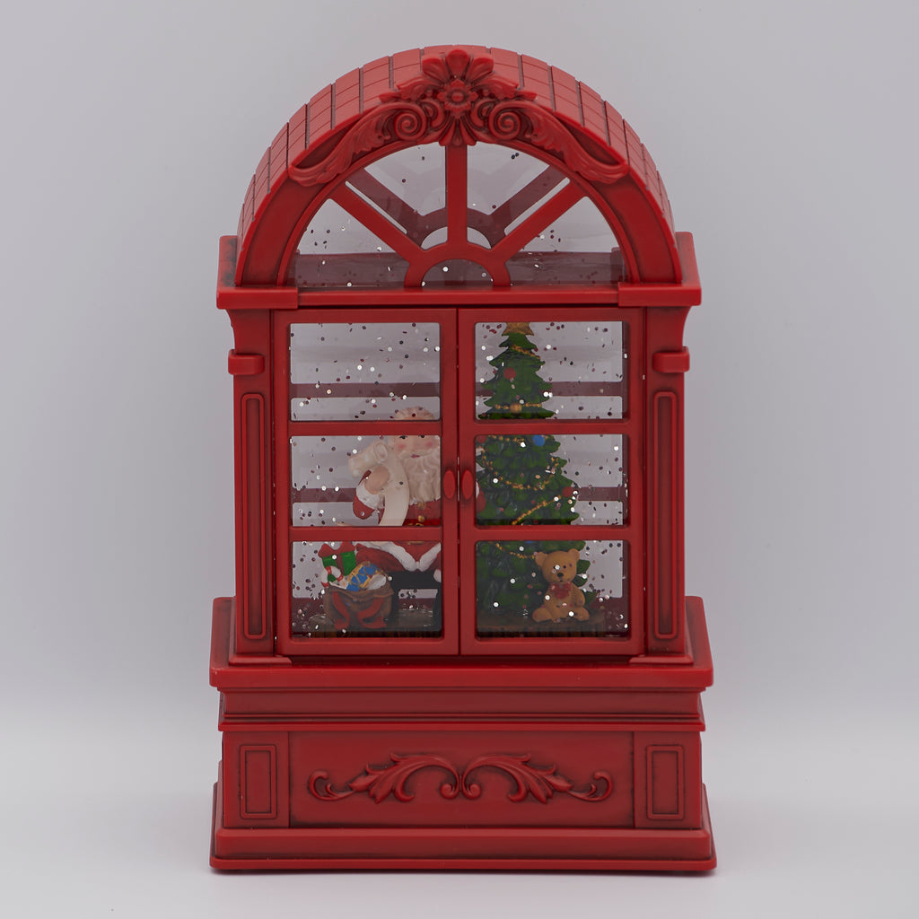 Create a magical holiday scene with this enchanting lighted swirl display. Santa is captured checking his list inside a charming window casing, while swirling glitter sparkles in the glow of warm light. A festive accent that radiates Christmas cheer, it makes a beautiful statement piece for mantels, entryways, or holiday displays.