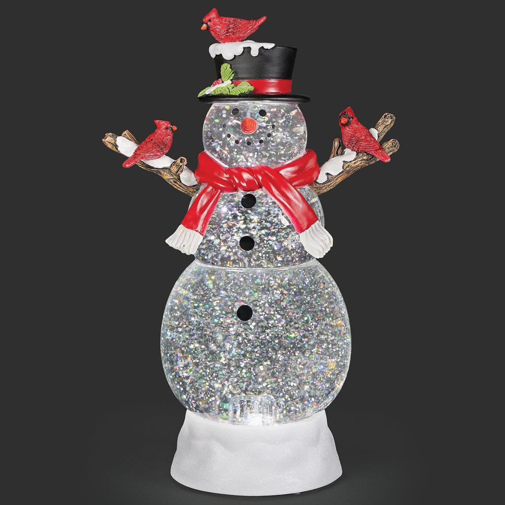 Add a touch of nature’s winter magic to your holiday decor with this charming lighted swirl snowman, beautifully accented by bright red cardinals. Swirling glitter and a soft, gentle glow create a tranquil, festive scene that brings peace, warmth, and seasonal charm to any space during the holidays.