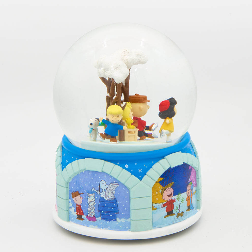 Celebrate the magic of winter with this charming musical waterglobe, featuring Snoopy and the Peanuts gang skating joyfully on a rotating ice rink. The base is adorned with delightful winter scenes, adding warmth and whimsy to your holiday decor, making it a perfect festive keepsake or seasonal decoration.