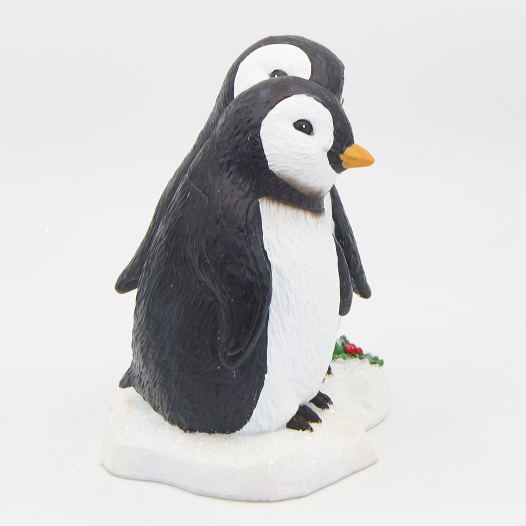 This delightful resin figure features a pair of penguins standing on a snowy base, capturing the joy of the season. With sweet detailing and a wintry feel, it's perfect for tabletops, mantels, or as part of a holiday village scene.