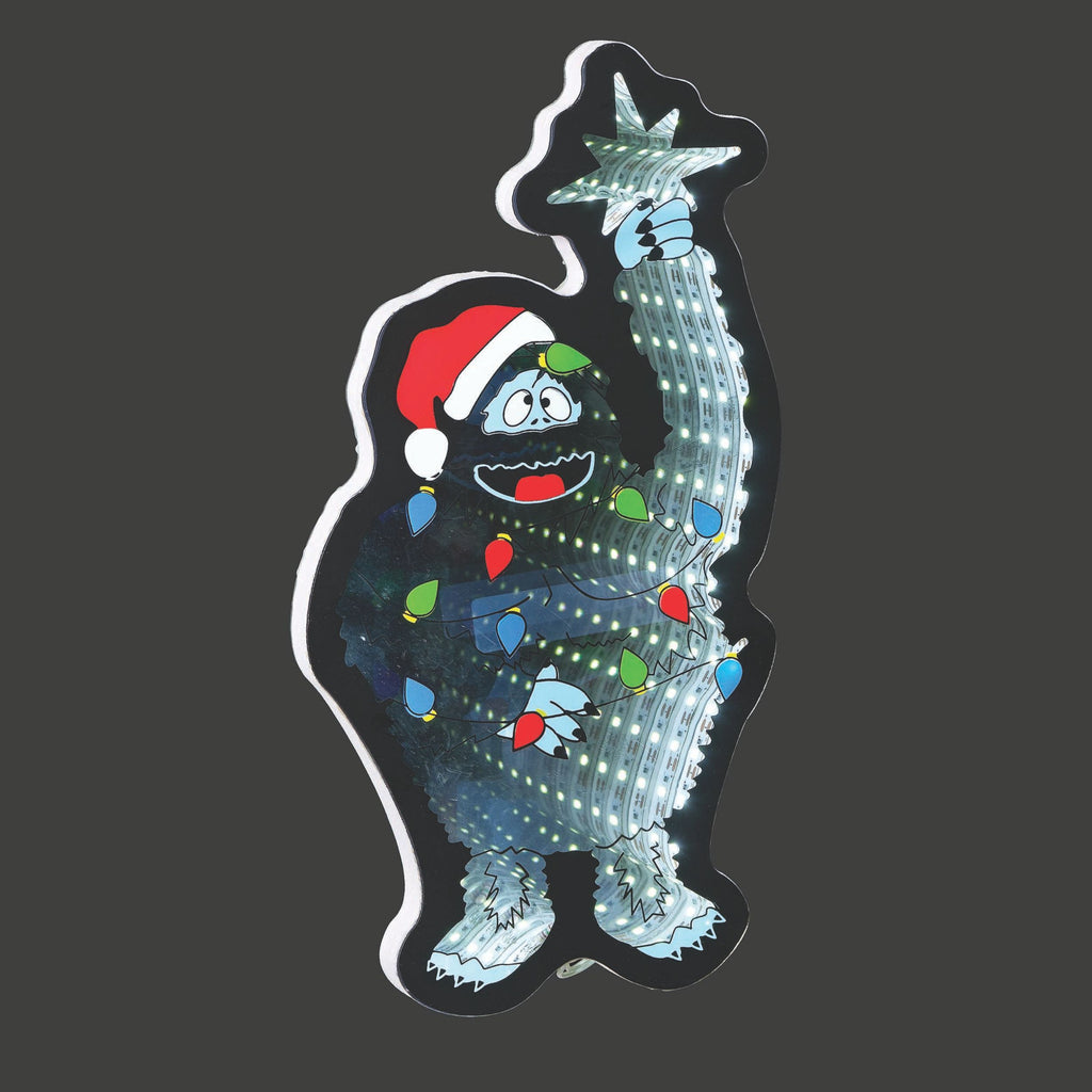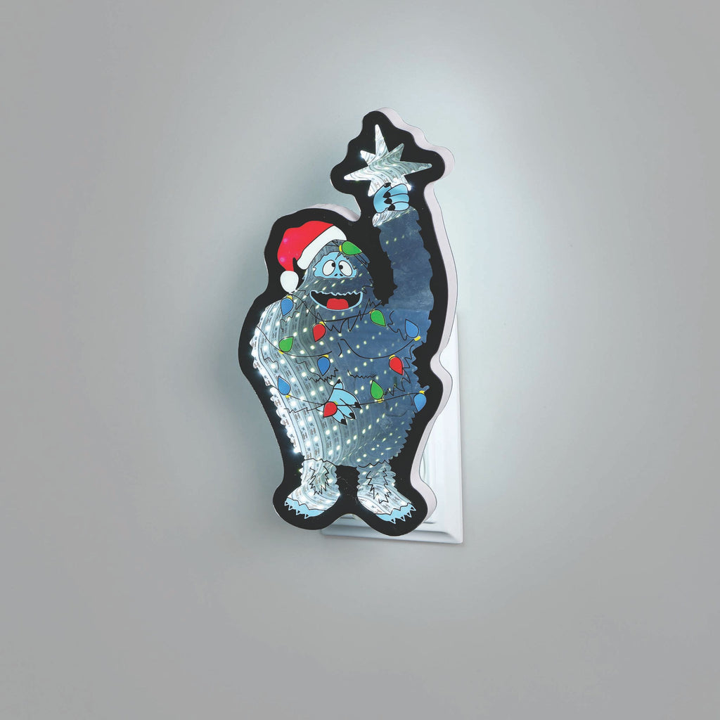 This night-light features a tangled Bumble design with an infinity-style lighting effect that creates layered depth within the sculpted form. Integrated illumination highlights the internal patterning, producing a consistent glow through the clear surface elements. The design reflects Rudolph the Red-Nosed Reindeer character styling.