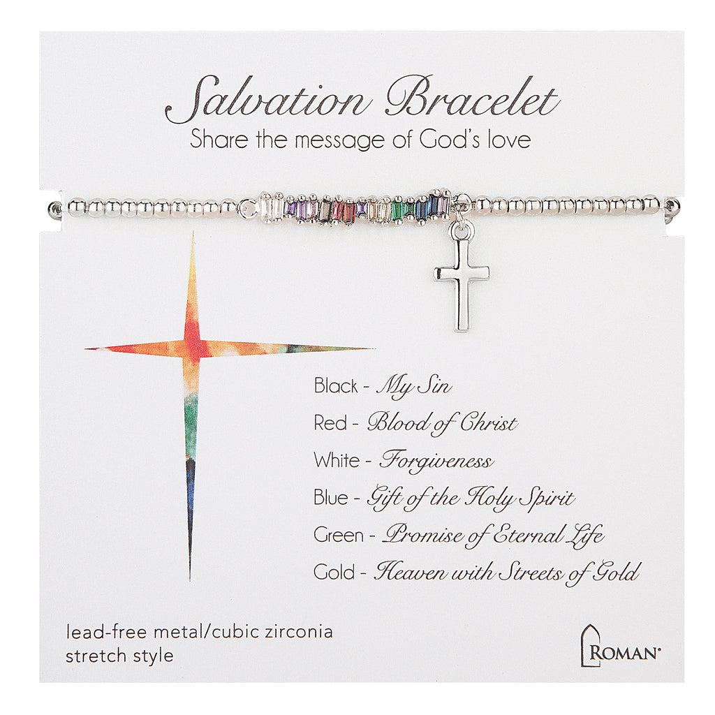 The Salvation Bracelet is a meaningful expression of faith, designed to reflect the Christian journey. Silver-toned stretch design is accented with natural stone, crystal, and metal beads, each color symbolizing a key truth, from forgiveness to eternal life. A delicate cross charm completes the design, making it a wearable reminder of God’s love. Ideal for daily inspiration, ministry, or heartfelt gifting.