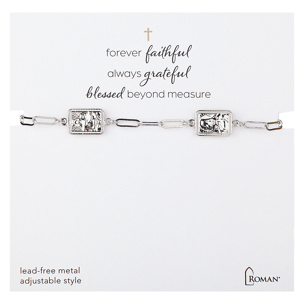 This adjustable scapular bracelet blends tradition with timeless style, featuring two rectangular devotional medals on a sleek paperclip-style chain. Lightweight and versatile, it’s perfect for layering or wearing on its own as a daily reminder of devotion. Available in gold or silver tone, it’s a meaningful piece for yourself or as a thoughtful gift of faith.