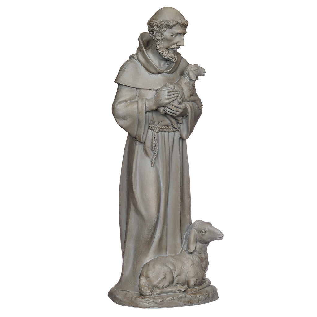 Add a touch of peace and devotion to your outdoor space with this beautifully detailed St. Francis of Assisi garden statue. Depicting the beloved saint holding a lamb in his arms while another rests at his feet, this piece symbolizes compassion, humility, and care for all living creatures. With its weather-resistant finish, it’s perfect for gardens, patios, memorial spaces, or quiet areas of reflection. A meaningful gift for animal lovers or anyone devoted to the patron saint of the environment.