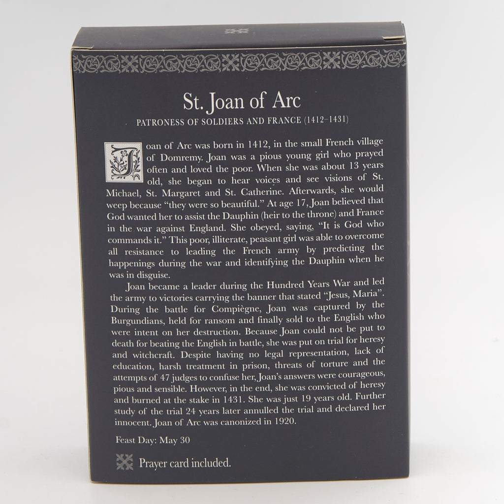 This finely crafted figure of St. Joan of Arc from the Patrons & Protectors Collection embodies courage, faith, and unwavering devotion to God’s calling. Depicted in detailed armor and holding her banner, she serves as an inspiring reminder of bravery, leadership, and divine purpose. A meaningful addition to prayer spaces, home altars, or as a thoughtful gift for anyone seeking strength in their faith journey.