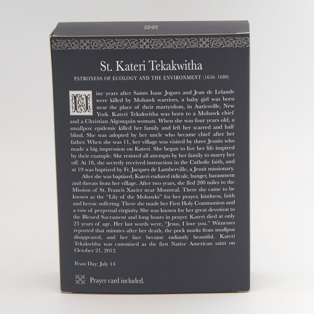 This finely detailed St. Kateri Tekakwitha figure from the Patrons & Protectors Collection honors the first Native American saint, cherished for her purity, humility, and unwavering faith. Often called the “Lily of the Mohawks,” she is a powerful intercessor and a symbol of courage in living out one’s beliefs. A meaningful devotional piece, it inspires hope, healing, and connection to both faith and heritage, ideal for prayer spaces, gifts, or moments of reflection.