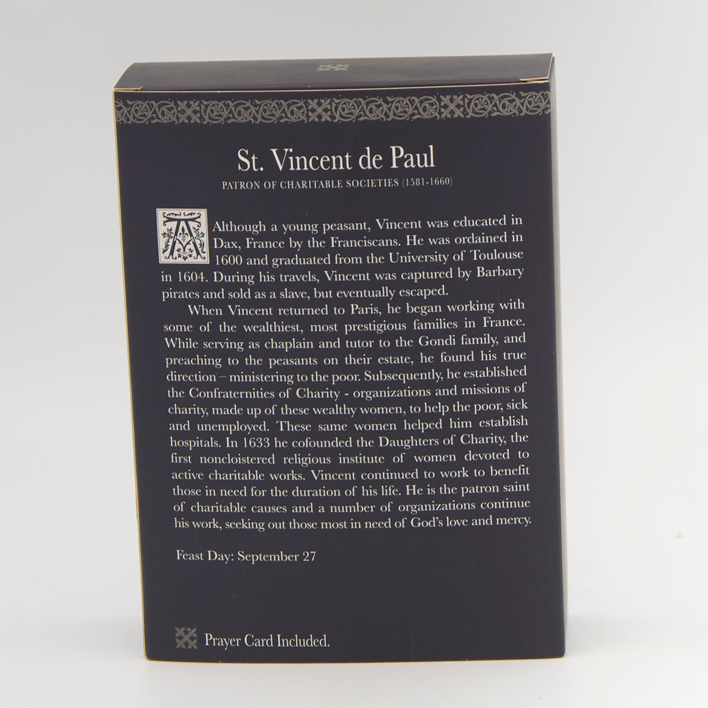 This detailed St. Vincent de Paul figure from the Patrons & Protectors collection honors the saint renowned for his tireless service to the poor and marginalized. Depicted with children in his care, the statue beautifully reflects his legacy of compassion, charity, and faith in action. A meaningful devotional piece that inspires kindness, generosity, and service to others, perfect for prayer spaces, home altars, or as a heartfelt gift.