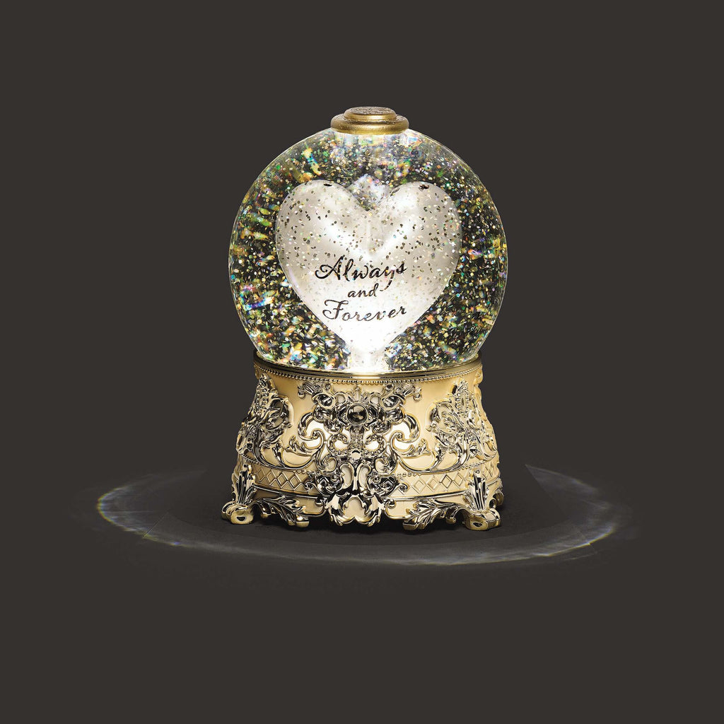 Bring timeless romance to your décor with this elegant swirl heart glitterdome. Featuring a sculpted heart centerpiece with the heartfelt message “Always and Forever”, this decorative piece is surrounded by shimmering glitter that creates a beautiful swirling effect when illuminated.
