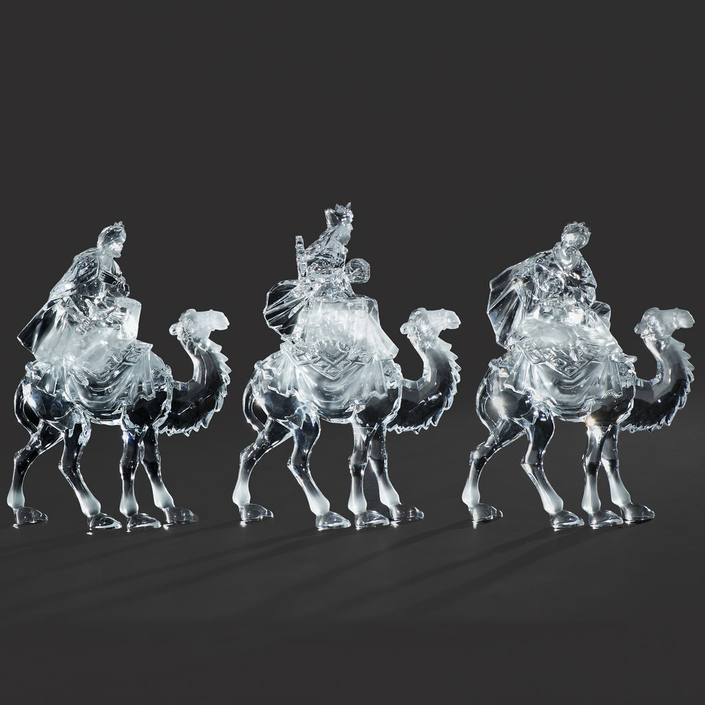 Complete your nativity scene with this striking set featuring the Three Kings on camels. Each figure captures the reverence and majesty of the Magi's journey. A beautiful addition to your holiday decor, these figures pair perfectly with your Holy Family set or make a standalone display of faith and tradition.