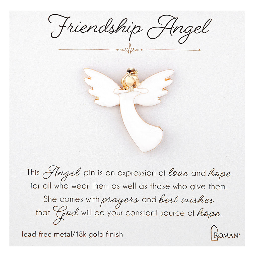 Each gold-tone angel pin is an elegant symbol of faith, comfort, and protection sold individually and paired with a meaningful sentiment card. Finished in a warm gold tone and presented in a silver gift box, these pins are ideal for sharing encouragement or blessings. Choose from a variety of uplifting styles, each featuring a unique message.