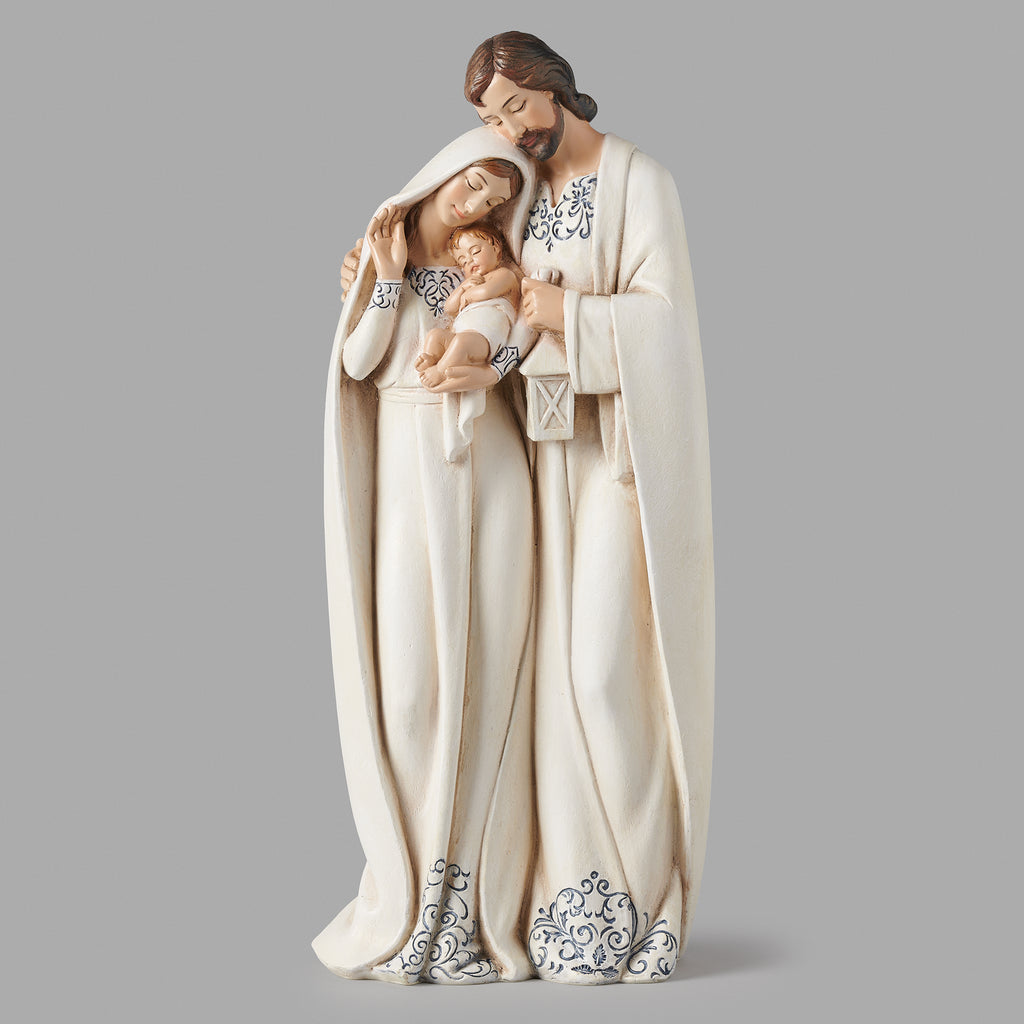 From the Joseph’s Studio Collection, this resin Holy Family figure features a refined ivory finish accented with deep blue ornamentation. The close, tender poses of Mary, Joseph, and Baby Jesus beautifully capture the sacred bond of family. A peaceful and meaningful piece that brings reverence to holiday displays or year-round home décor.